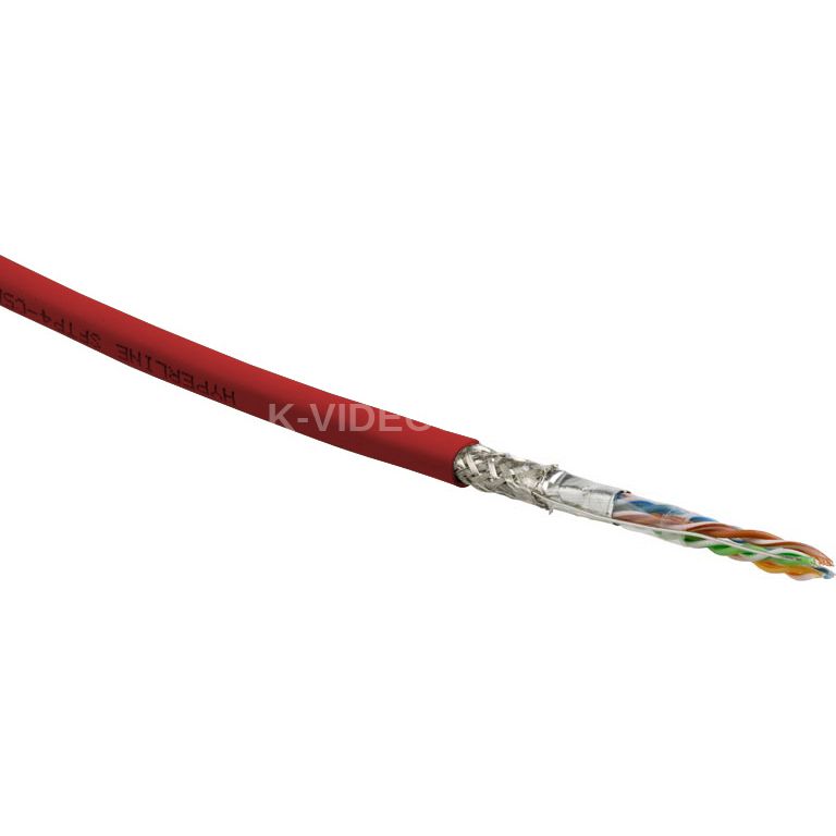 Hyperline SFUTP4-C5E-S24-IN-LSZH-RD-305 (305 м) Кабель витая пара, экранированный SF/UTP, общий экран оплетка и фольга, категория 5e, 4 пары 24 AWG, 4х2х0,51 мм, однопров.жилы, LSZH, нг(А)-HF, внутр.-40°C – +75°C, красный, системная гарантия 25 лет