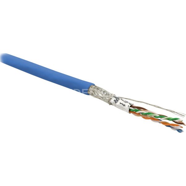 Hyperline SFUTP4-C6-P26-IN-LSZH-BL-500 (500 м) Кабель витая пара, экранированный SF/UTP, общий экран оплетка и фольга, категория 6, 4 пары 26 AWG, 4х2х0,48 мм, многопроволочные жилы, LSZH, нг(А)-HF, внутренний -40°C – +75°C, синий