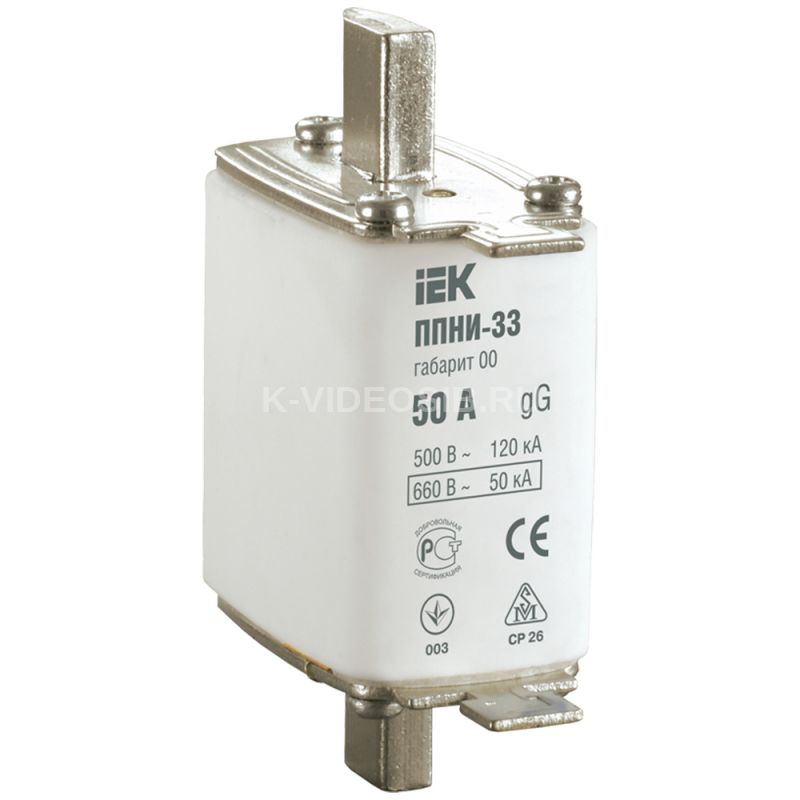 Плавкая вставка предохранителя ППНИ-33 габарит 00 160А IEK DPP10-160. Предохранители плавкие серии ППНИ типа gG общего применения предназначены для защиты промышленных электроустановок и кабельных линий от перегрузки и короткого замыкания и выпускаются на номинальные токи от 2 до 630 А. Используются в однофазных и трехфазных сетях напряжением до 660 В частоты 50 Гц. Области применения предохранителей ППНИ: вводно-распределительные устройства (ВРУ); шкафы и пункты распределительные (ШРС, ШР, ПР); оборудование трансформаторных подстанций (ЩО); шкафы низкого напряжения (ШРПНН); шкафы и ящики управления. Соответствуют требованиям ГОСТ Р 50339.0, 50339.2.