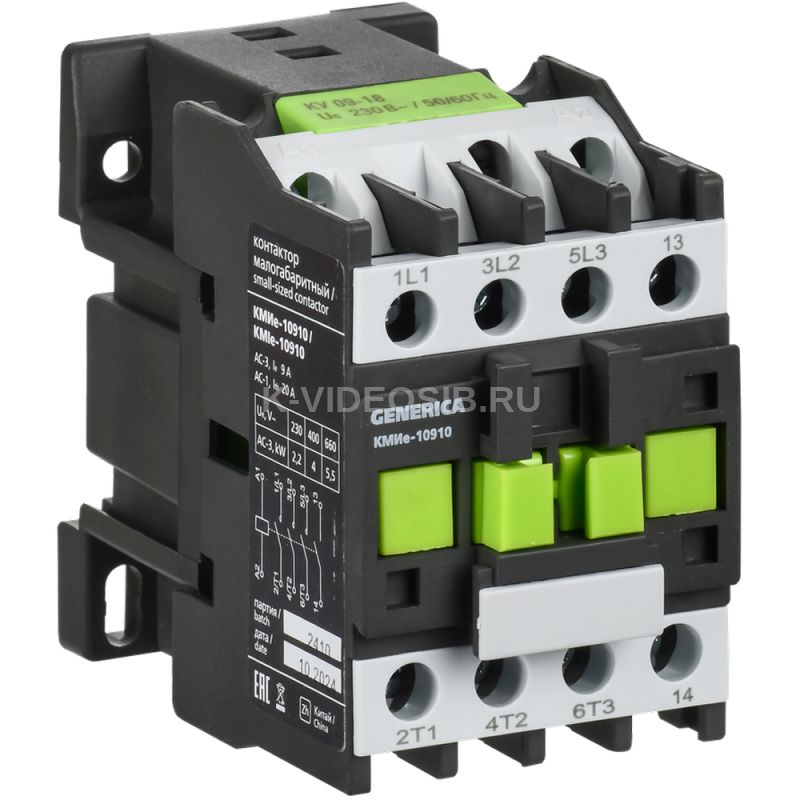 Малогабаритный контактор серии КМИе IEK KKME11-009-110-10 предназначен для пуска, остановки и реверсирования асинхронных электродвигателей с короткозамкнутым ротором на напряжение до 660 В (категория применения АС-3).