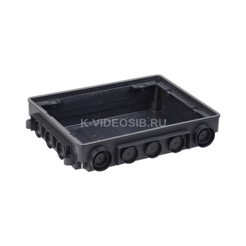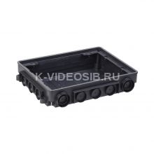 PRIMER Коробка напольная под лючок ONFLOOR 12 модулей IEK. Коробка напольная ONFLOOR 12. Предназначена для установки лючка ONFLOOR 12: KNL-57-12-7012 в бетонный пол толщиной 57-75 мм. Перед заливкой коробку необходимо зафиксировать на монтажной поверхности, предварительно просверлив основание коробки. Требуемую высоту коробки можно выставить с помощью винтов, которые регулируют высоту внутреннего вкладыша коробки (винты находятся на каждой из вершин коробки) в диапазоне от 57 мм до 75 мм. В случае если слой бетона будет выше чем 75 мм необходимо использовать нивелирующий комплект: KNK-SN-9011 (приобретается отдельно). В коробке предусмотрены вводы для электромонтажных труб (D 25/32/40 мм) или металлического лотка 35х100 мм. Для исключения попадания раствора внутрь коробки во время заливки бетона в комплекте поставляется защитная крышка. После застывания смеси защитную крышку удалить. Комплект поставки: Коробка напольная ONFLOOR 12 - 1 шт., защитная крышка - 1 шт., комплект крепежа - 1 компл. Материал: полиамид. Цвет: черный.
