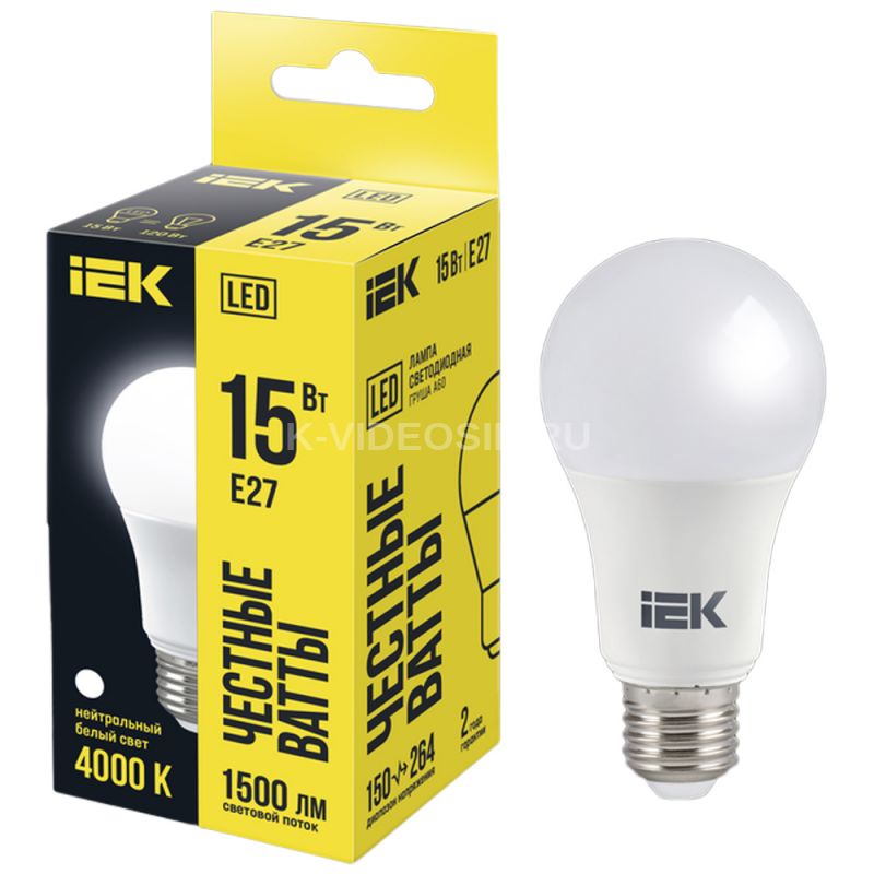 Технические характеристики IEK LLE-A60-15-230-40-E27