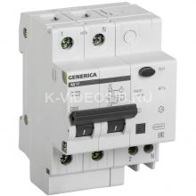 Дифференциальный автоматический выключатель АД12 2Р GENERICA MAD15-2-025-C-030 обеспечивает защиту людей от поражения электрическим током при прямом непреднамеренном прикосновении к токоведущим частям электрооборудования, защиту от перегрузки и короткого замыкания.