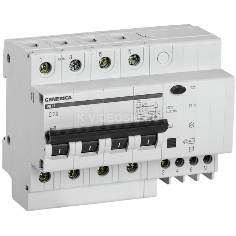 Дифференциальный автоматический выключатель АД14 4Р GENERICA MAD15-4-032-C-030 обеспечивает защиту людей от поражения электрическим током при прямом непреднамеренном прикосновении к токоведущим частям электрооборудования, защиту от перегрузки и короткого замыкания.