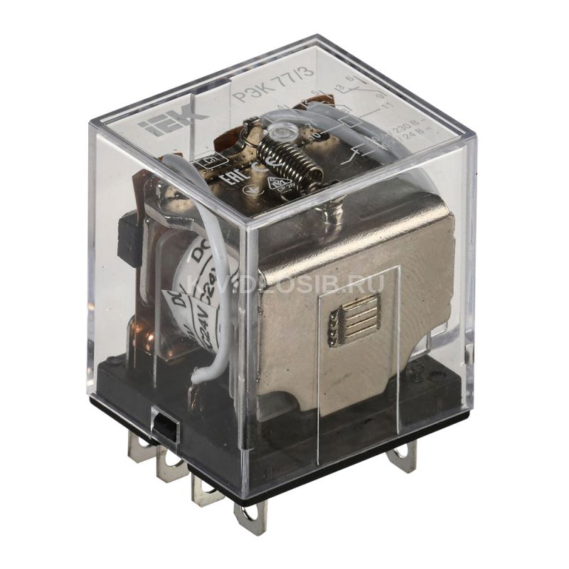 Реле РЭК77/3(LY3) 10А 24В DC ИЭК предназначены для передачи команд управления исполнительными элементами путем коммутации их электрических цепей своими переключающими контактами. Реле соединяются с розеточными модульными разъемами РРМ77 и РРМ78, устанавливаемыми на 35-мм монтажной DIN-рейке. На разъемах расположены зажимы выводов переключающих контактов и катушки. В реле применяются серебросодержащие контакты.
