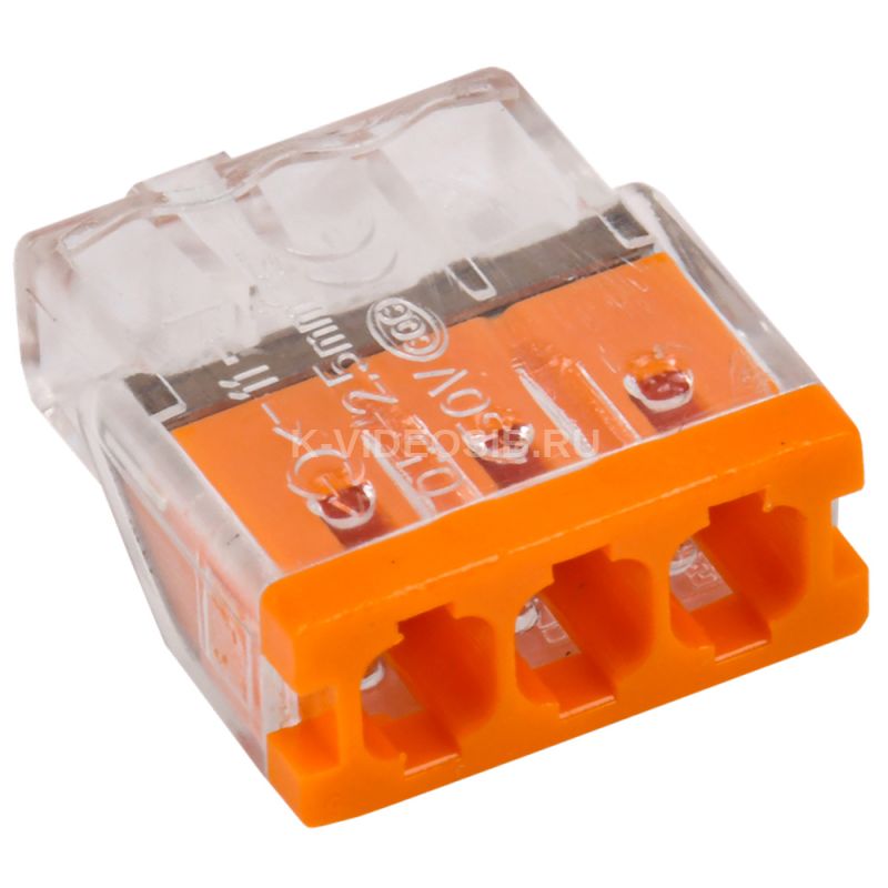 Строительно-монтажная клемма СМК 772-203 (4штуки/упаковка) IEK UKZ30-203-004. Количество подключаемых проводников – 3; место соединения – сбоку (поперечное); номинальное поперечное сечение – 2,5 мм²; сечение одножильного жёсткого провода – 0,5...2,5 мм². Строительно-монтажная клемма серии 772 в прозрачном корпусе, без контактной пасты, предназначена для однократного подключения одножильных/ многожильных медных проводников.