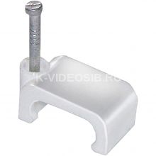 Скоба с гвоздём предназначена для быстрого и надежного крепления плоских кабелей к дереву, прессованному картону, швам кирпичной кладки, к штукатурке, бетону, кирпичу. Изготовлены из гибкого негорючего ударопрочного полипропилена, гвоздь - закаленная оцинкованная сталь.
