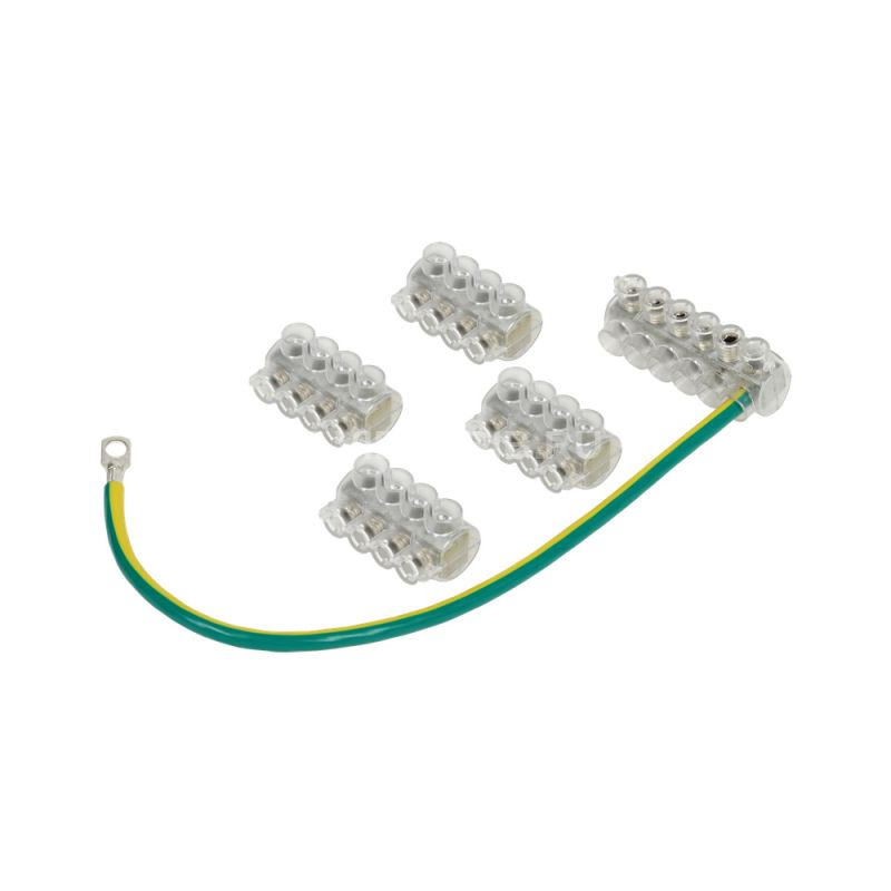 Набор колодок клеммных НК-2 (4xKE10.1+KE10.3, SV15.5) IEK и клеммники для сетей уличного освещения применяются для соединения алюминиевых и медных L, N, PE или PEN-проводников внутри стоек, опор или щитов. Наборы включают заземляющий проводник 16 мм2 длиной 0,35 м.