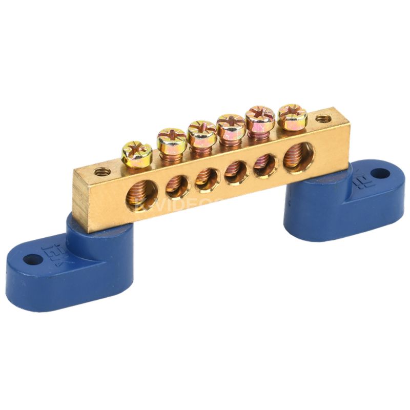 Шина N "ноль" на двух угловых изоляторах ШНИ IEK YNN10-812-6C2-K07 предназначена для электрического и механического соединения нулевых, защитных и фазных проводников. Конструктивно шины ШНИ выполнены из латунной шины, установленной на пластиковый изолятор или в изолятор, изготовленный из самозатухающего пластика. Нормальными условиями эксплуатации шин являютcя: - температура окружающей среды от –40 до +50 С; - среднее значение относительной влажности не более 90%.