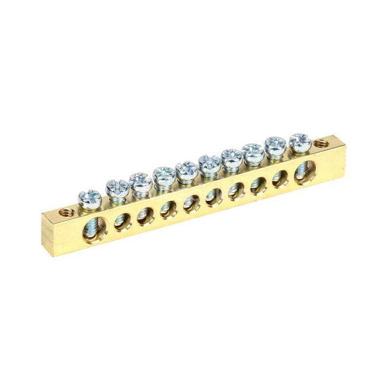 IEK YNN11-10-100 применяются в щитовом оборудовании для подсоединения нулевых рабочих (N) и нулевых защитных проводов (РЕ). Крепление шины предусмотрено по центру (типы 8/1; 14/1) и по краям (типы 8/2 и 14/2) через изолятор нулевой шины на 35 мм монтажную DIN-рейку и через угловые изоляторы нулевой шины, а также непосредственно на панель щита. При подключении к шинам медных многожильных проводов рекомендуется оконцевание их наконечниками-гильзами. Выполнены из латуни.