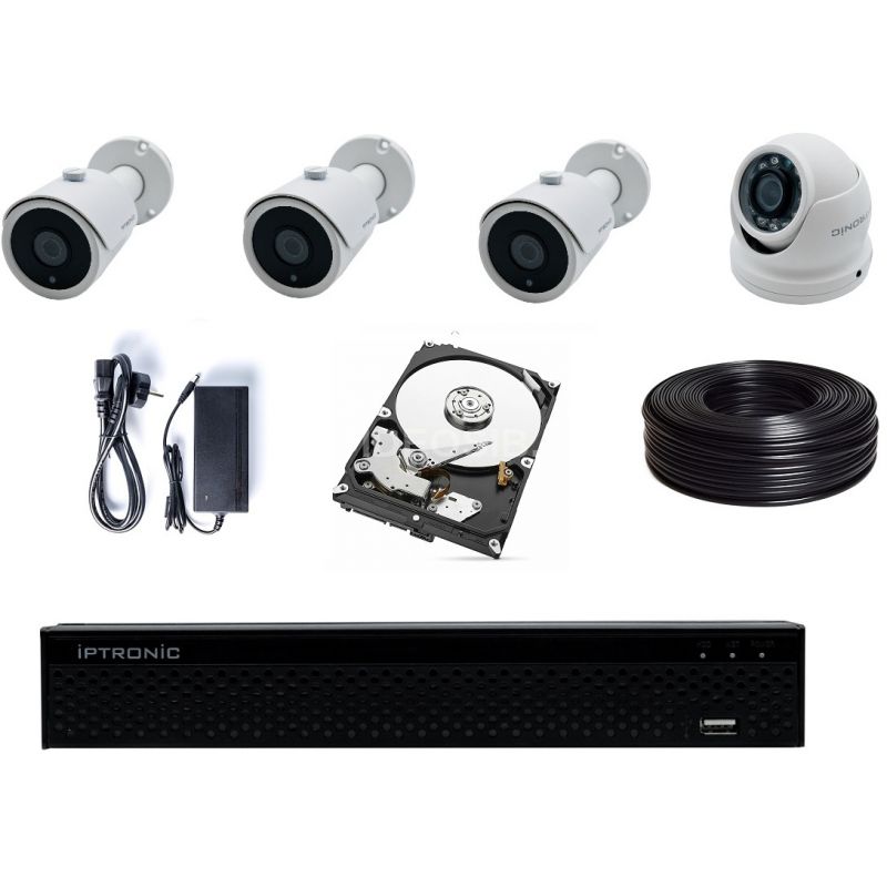 IPTRONIC Комплект AHD дача/коттедж 1Tb Bullet-Dome Kit 3-1 - комплект видеонаблюдения включающий в себя 3 цилиндрических камеры для общего круглосуточного обзора территории дистанцией до 20-25м и 1 купольную камеру для распознавания лиц на дистанции до 4,5-5 метров.