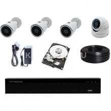 Также комплект включает в себя видеорегистратор с HDD, ёмкостью 1Тб, блок питания, кабели и разъёмы для подключения камер.