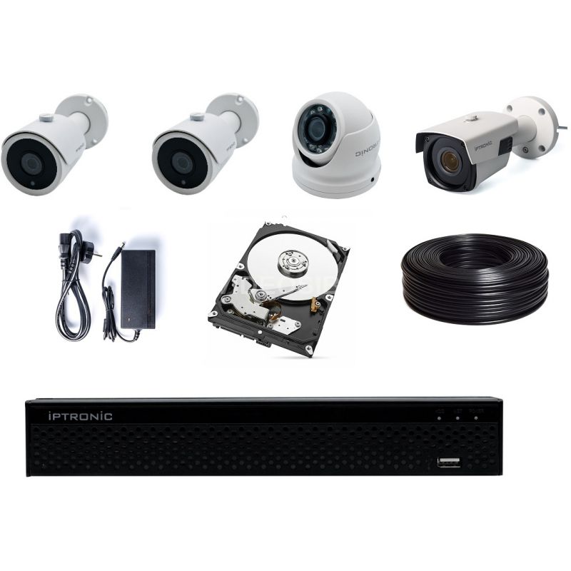 IPTRONIC Комплект AHD дача/коттедж 2Tb Bullet-Dome Kit 2-2 - комплект видеонаблюдения включающий в себя 2 цилиндрических камеры для общего круглосуточного обзора территории дистанцией до 20-25м, 1 купольную камеру для распознавания лиц на дистанции до 4,5-5 метров и 1 камеру для распознавния лиц, автомобилей на дистанции до 9-10 метров (цилиндрический корпус).