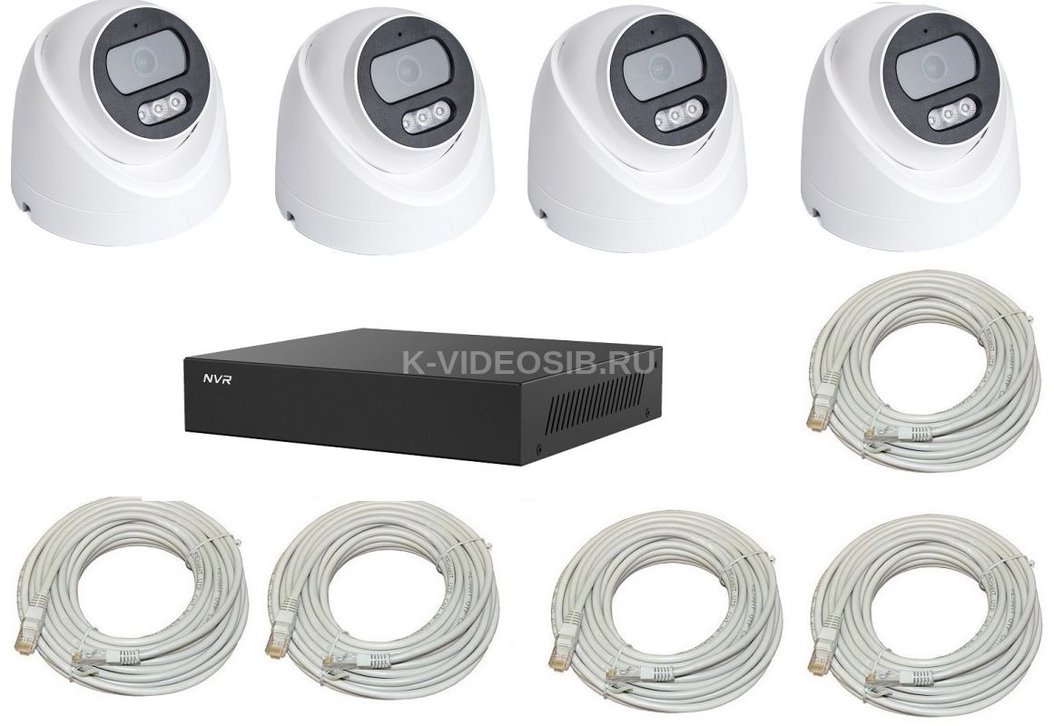 Готовый домашний комплект видеонаблюдения для дома на 4 IP-камеры ECO IVIDEON состоит из 4-х купольных камер видеонаблюдения, видеорегистратора и патчкордов для подключения.