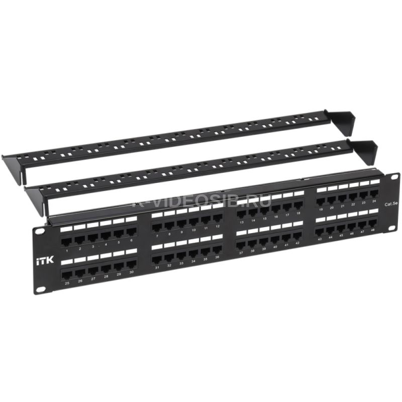ITK 2U патч-панель кат.5E UTP 48 портов IEK PP48-2UC5EU-D05-1 с кабельным органайзером является важнейшей частью любой СКС и IT-инфраструктуры здания и сооружения с большим количеством информационных розеток и терминальных портов конечных пользователей, которые необходимо коммутировать на порты активного сетевого оборудования, размещенного в серверных и распределительных узлах.