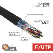 Технические характеристики Кабель F/UTP, CAT 5, PE 25х2х0,48мм, внешний, черный REXANT (01-1203)