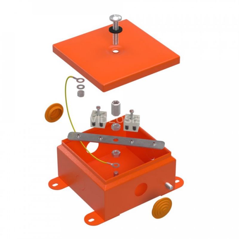 Металлическая коробка для огнестойких кабельных линий отличается высокой степенью защиты (IP55 с использованием обычных гермовводов, либо IP68 при использовании специальных сальников или соединительных муфт с аналогичной степень защиты) от вредных внешних воздействий, таких как ударные нагрузки и проникновение влаги и пыли. Корпус коробки изготовлен из листовой стали с последующим окрашиванием всех поверхностей.