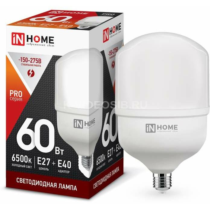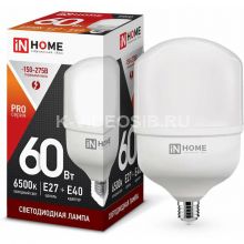 Описание Лампа светодиодная LED-HP-PRO 60Вт 230В 6500К E27 5400Лм с адаптером IN HOME 4690612031132