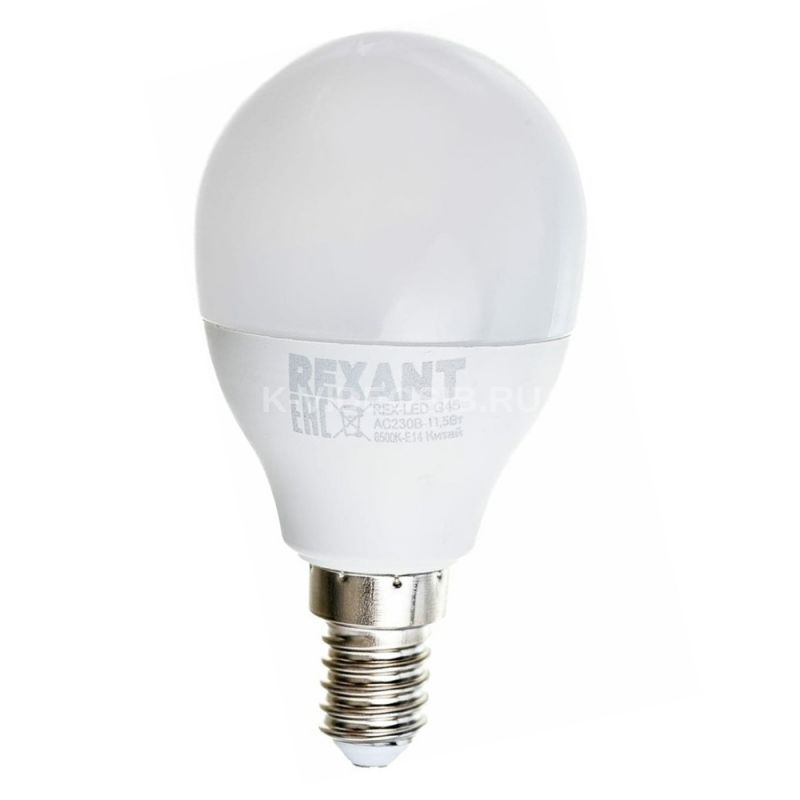 Описание Лампа светодиодная Шарик (GL) 11,5Вт E14 1093Лм 6500K холодный свет REXANT (604-209)