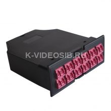Кассета представляет собой пластмассовый корпус, в котором находятся две 12-волоконные сборки типа «гидра». С тыльной стороны кассеты находятся 12-волоконные разъемы МРО, с лицевой стороны кассеты – два ряда оптических разъемов duplex LC.