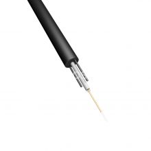 Кабель содержит центральный оптический модуль со свободно уложенными волокнами. Свободное пространство в оптическом модуле заполнено гидрофобным наполнителем. Поверх модуля накладывается оболочка из полиэтилена средней плотности. В оболочке кабеля диаметрально противоположно расположены две стальные проволоки, которые выполняют функции силовых элементов.