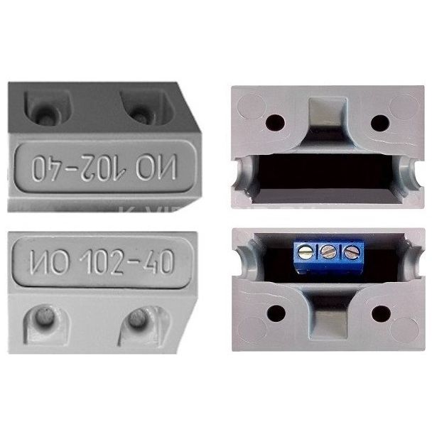 Извещатели охранные точечные магнитоконтактные ИО 102-40 предназначены для блокировки гаражных ворот, ангаров, железнодорожных контейнеров, телефонных шкафов и других конструктивных магнитопроводящих (металлических) и магнитонепроводящих (алюминиевых, деревянных и т.д.) элементов зданий и сооружений на открывание и смещение с выдачей в шлейф приёмно-контрольного прибора извещения о тревоге путем размыкания или замыкания контактов геркона. Извещатели конструктивно состоят из магнитоуправляемого датчика (геркона, помещённого в пластиковый или металлический корпус) и управляющего магнита (магнит, установленный в пластиковый или металлический корпус). Конструкция извещателя обеспечивает степень защиты оболочки IP55 по ГОСТ 14254-2015. Особенности ИО 102-40 Б2П (В):