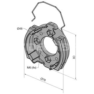 4 резьбы M6 межцентровое 48 мм, 4 посадочных места под гайки M6 межцентровое 48 мм, для приводов серии L
