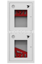 Секции шкафа имеют равные размеры и расположены друг над другом. Каждая секция укомплектована одной рукавной кассетой, в которой хранится свернутый в скатку пожарный напорный рукав.