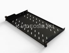 Полка выполнена в черном цвете, что придает ей современный и стильный вид, позволяя легко вписаться в любой интерьер. Габариты полки составляют: ширина - 482 мм, высота - 44 мм, глубина - 250 мм, что позволяет использовать её в стандартных 19-дюймовых стойках.