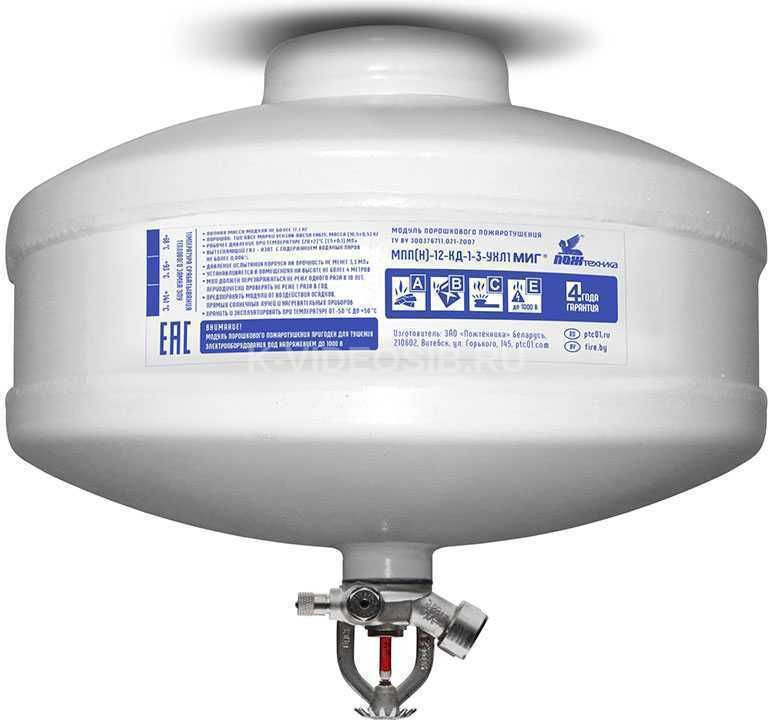 УПА МПП(Н)-12-КД-1-З-УХЛ1 «МИГ» отличается от обычного порошкового огнетушителя тем, что имеет в своей конструкции тепловой замок, который может обнаружить пожар и привести устройство в действие автоматически, без помощи человека при воздействии на него температуры от 141С в течение до 1 минуты. Применение высококачественного огнетушащего порошка, сертифицированного в Европе и ЕАЭС, а также использование современной технологии зарядки осушенным азотом позволяет ликвидировать возгорание до 45 м2 и 100 м3 по классу А, до 25 м2 и 32 м3 по классу В за 15 секунд. Перезарядка УПА МПП – через 10 лет.