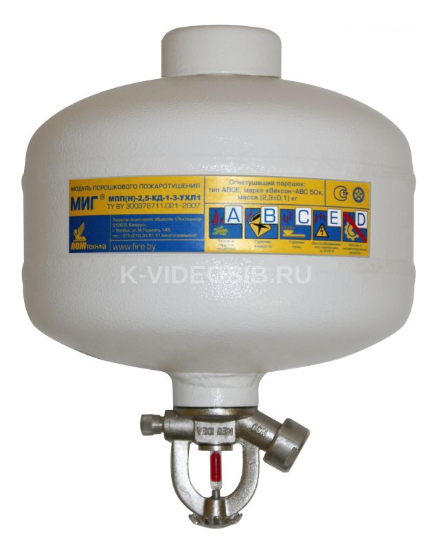 УПА МПП(Н)-2,5-КД-1-З-УХЛ1 «МИГ» отличается от обычного порошкового огнетушителя тем, что имеет в своей конструкции тепловой замок, который может обнаружить пожар и привести устройство в действие автоматически, без помощи человека при воздействии на него температуры от 68С в течение до 1 минуты. Применение высококачественного огнетушащего порошка, сертифицированного в Европе и ЕАЭС, а также использование современной технологии зарядки осушенным азотом позволяет ликвидировать возгорание до 7 м2 и 18 м3 по классу А, до 7 м2 и 12 м3 по классу В за 15 секунд. Перезарядка УПА МПП – через 10 лет.