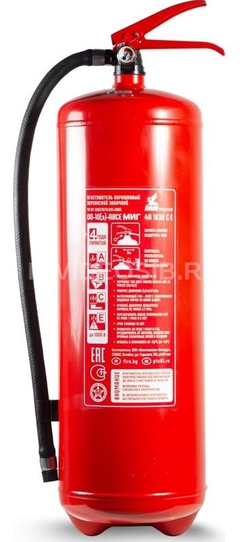 Популярный закачной порошковый огнетушитель с рангом 4А 183В и зарядом 10 кг для защиты помещений с повышенным уровнем взрывной и пожарной опасности категорий А, Б, В. Применяется также на судах и других крупногабаритных транспортных средствах.