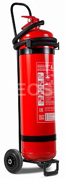 Огнетушитель смонтирован на удобной съемной тележке с обрезиненными колесами диаметром 100 мм и морозостойкий резинотканевый распылитель, что позволяет легко управляется одним человеком, подобраться к очагу возгорания и оперативно потушить его. Заряжен огнетушащим порошком, сертифицированным по строгим европейским нормам.