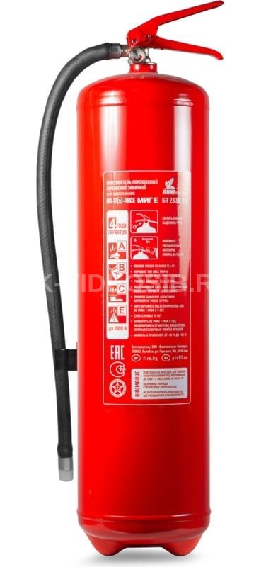 Самый мощный и эффективный переносной огнетушитель ОП-12(з)-АВСЕ МИГ Е (6А 233В С Е) с рангом 6А, 233В и зарядом 12 кг предназначен для защиты производственных, складских помещений и автозаправочных станций.