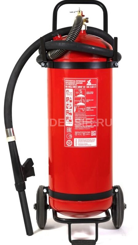 Огнетушитель смонтирован на мощной съемной тележке с обрезиненными колесами диаметром 200 мм. Оснащен морозостойким резинотканевым распылителем с пружинным каркасом, что позволяет легко управляется одним человеком, подобраться к очагу возгорания и оперативно потушить его. Распылитель оснащен перекрывным стволом, что позволяет одному оператору легко управлять процессом тушения, менять позицию, многократно прерывать и возобновлять тушение, таким образом, обеспечивая полное соответствие п.105 ФЗ 123 "О требованиях пожарной безопасности". Баллон огнетушителя имеет специальное дополнительное отверстия для зарядки порошка, что позволяет не обламывать сифонную трубку при перезарядке огнетушителя.
