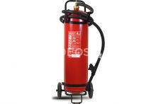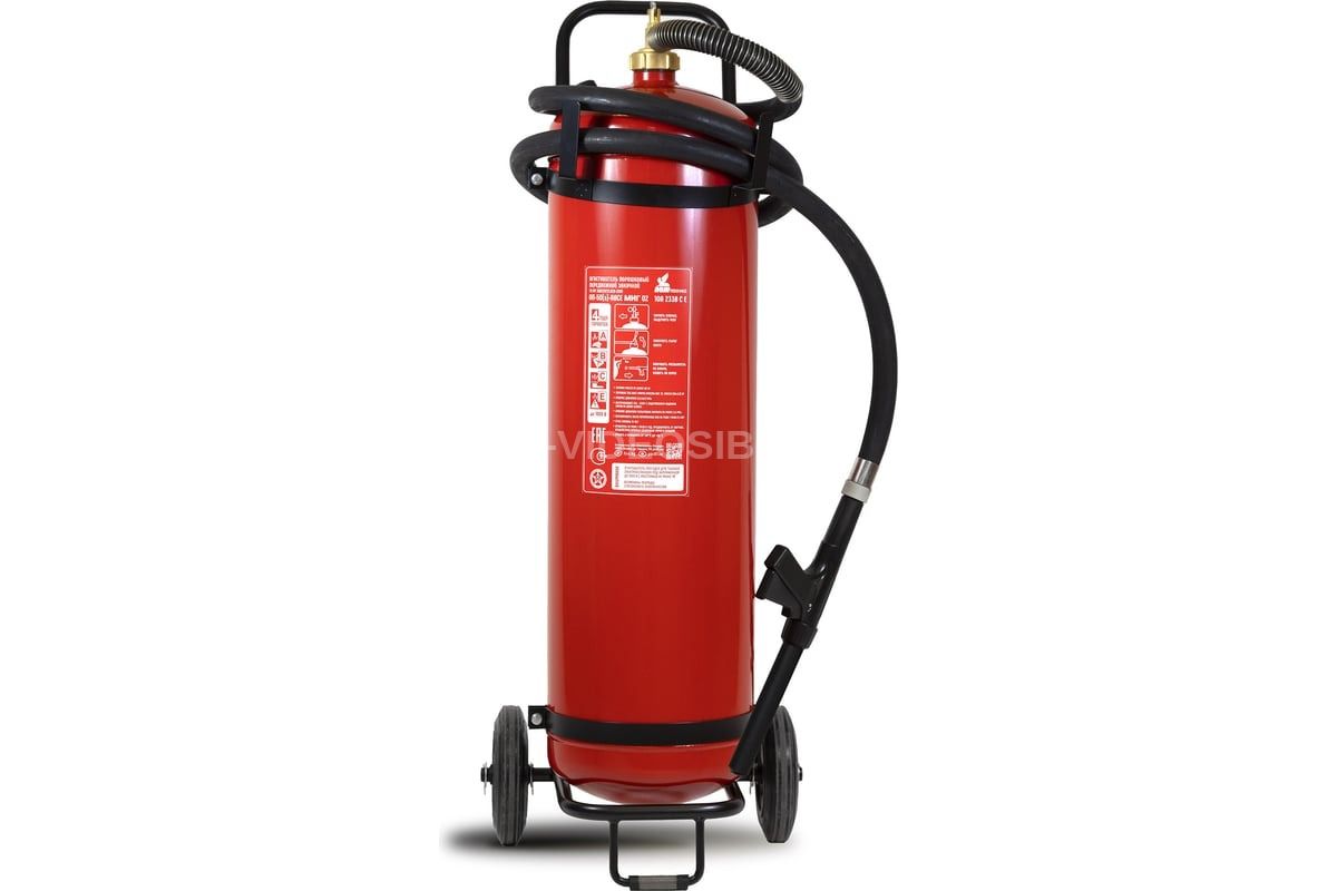 Огнетушитель смонтирован на мощной съемной тележке с обрезиненными колесами диаметром 200 мм. Оснащен морозостойким резинотканевым распылителем с пружинным каркасом, что позволяет легко управляется одним человеком, подобраться к очагу возгорания и оперативно потушить его. Распылитель оснащен перекрывным стволом, что позволяет одному оператору легко управлять процессом тушения, менять позицию, многократно прерывать и возобновлять тушение, таким образом, обеспечивая полное соответствие п.105 ФЗ 123 "О требованиях пожарной безопасности". Баллон огнетушителя имеет специальное дополнительное отверстия для зарядки порошка, что позволяет не обламывать сифонную трубку при перезарядке огнетушителя.