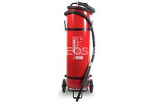 Огнетушитель смонтирован на мощной съемной тележке с обрезиненными колесами диаметром 200 мм. Оснащен морозостойким резинотканевым распылителем с пружинным каркасом, что позволяет легко управляется одним человеком, подобраться к очагу возгорания и оперативно потушить его. Распылитель оснащен перекрывным стволом, что позволяет одному оператору легко управлять процессом тушения, менять позицию, многократно прерывать и возобновлять тушение, таким образом, обеспечивая полное соответствие п.105 ФЗ 123 "О требованиях пожарной безопасности". Баллон огнетушителя имеет специальное дополнительное отверстия для зарядки порошка, что позволяет не обламывать сифонную трубку при перезарядке огнетушителя.