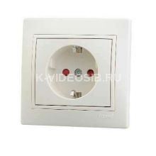 Розетка 1-м СП Мира 16А IP20 с заземл. защ. шторки со вставкой керамика крем. LEZARD 701-0303-124