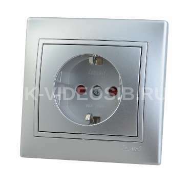 Описание Розетка 1-м СП Мира 16А IP20 с заземл. защ. шторки со вставкой керамика сер. метал. LEZARD 701-1010-124