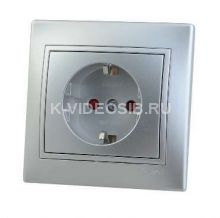 Розетка 1-м СП Мира 16А IP20 с заземл. защ. шторки со вставкой керамика сер. метал. LEZARD 701-1010-124