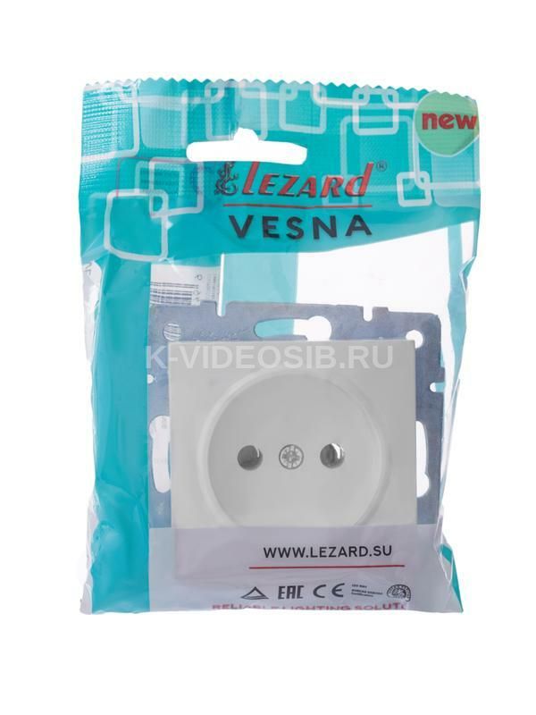 Описание Розетка 1-м СП Vesna без заземл. ПБТ механизм бел. LEZARD 742-0288-121B