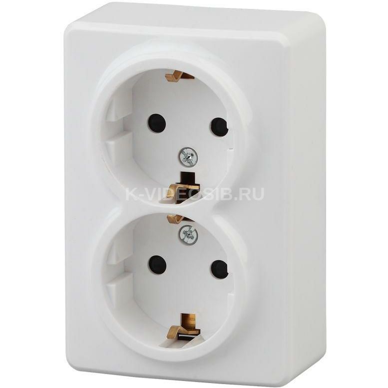 Описание Розетка 2-м ОП Эра Эксперт 11-2205-01 16А IP20 16AX 250В 2х2P+E Schuko бел. Эра Б0020691