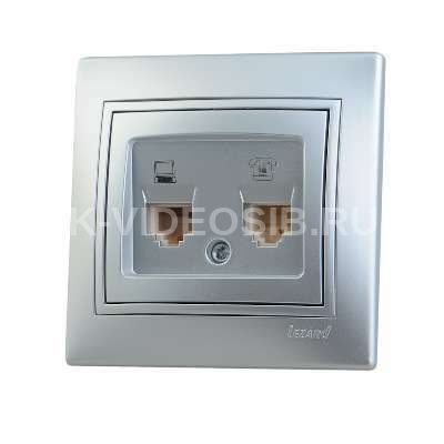 Описание Розетка компьютерная + телеф. СП Мира RJ11 + RJ45 метал. сер. LEZARD 701-1010-143