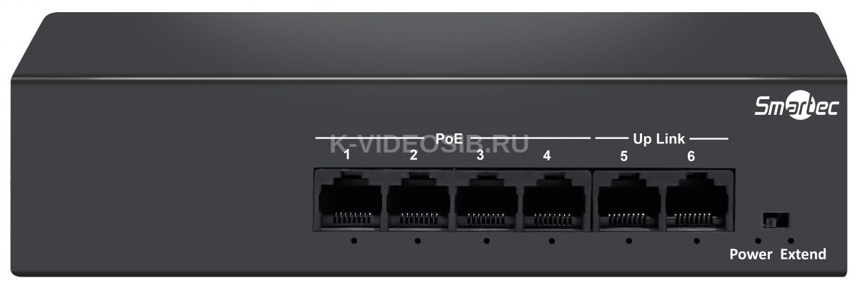PoE порты: 4 RJ-45 (10/100 Мбит/с); Uplink порты: 2 RJ-45 (10/100 Мбит/с) |