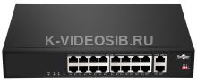 POE порты: 16 RJ-45 (10/100 Мбит/с); Uplink порты: 2 RJ-45 (1000 Мбит/с) |
