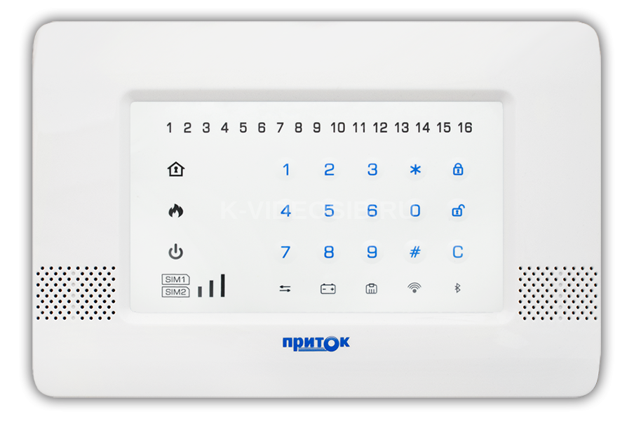Шлейфов сигнализации: 16; Индикация шлейфов: 16; Силовых выходов: 4; Модуль Wi-Fi: разъем для установки; Модуль беспроводных датчиков: разъем для установки; Модуль GSM: разъем для установки; Модуль речевого оповещения; Клавиатура: мембранная; Считыватель брелоков Приток-NFC; Источник питания: от сети переменного тока 220в; Литиевый аккумулятор. Размер корпуса: не более 233х158х50 мм.