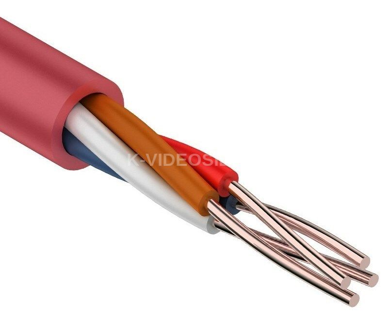 Жилы: однопроволочные медные жилы • Диаметр: 0,4 мм • Изоляция: ПВХ-пластикат пониженной пожароопасности с низким дымо- и газовыделением • Изолированные жилы скручены • Оболочка: ПВХ-пластикат пониженной пожароопасности с низким дымо- и газовыделением • Цвета изолированных жил: различных цветов • Число жил в кабеле: 4 • Оболочка красного цвета