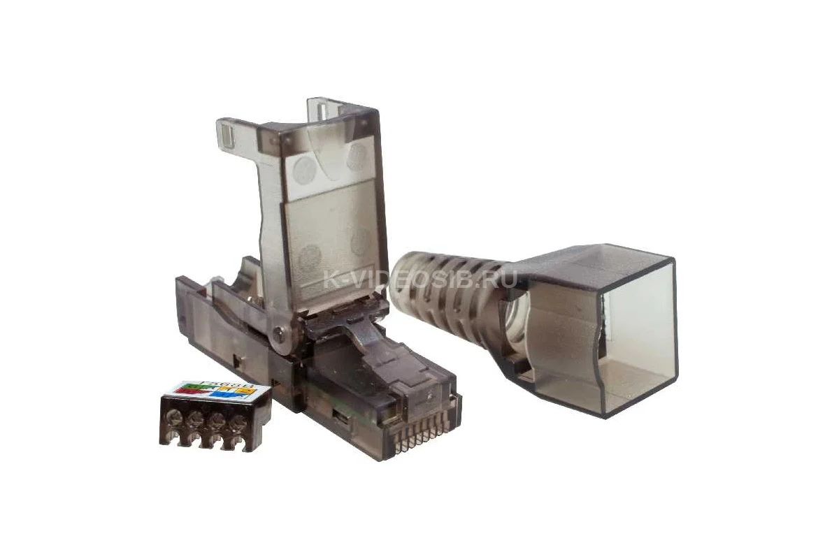 Безынструментальный коннектор (RJ-45) 8P8C SUPRLAN UTP Cat.6A 10-0239 с фиксатором кабеля используется для оконцевания кабеля витая пара в полевых условиях. Основными преимуществами такого коннектора является возможность использования его на кабелях большого диаметра (до 9 мм). Надежная фиксация коннектора к кабелю.Материал корпуса: ударопрочный ABS-пластик, UL-94V-0. Экранирование: UTP (U/UTP) без экрана. Материал контактов: Фосфористая бронза. Имеет универсальные ножи, подходящие для одножильного и многожильного кабеля. Конструкция коннектора имеет направляющую вставку для разведения проводников. Напыление контактов золотом, мкм: 3.Применяемый кабель: Одножильный/многожильный