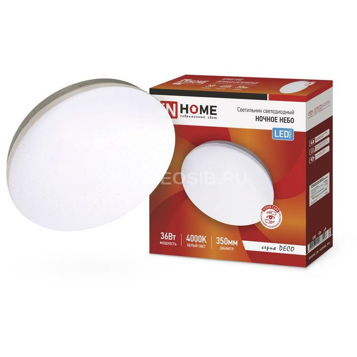 Технические характеристики Светильник светодиодный DECO 36Вт 230В 4000К 2340лм 350х55мм НОЧНОЕ НЕБО IN HOME 4690612033556