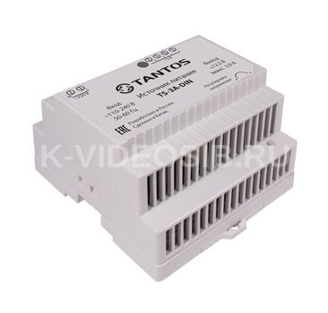 Источник стабилизированного питания Tantos TS-3A-DIN с напряжением 12В, 3,2А. Имеет возможность установки на DIN-рейку. Размеры источника питания составляют 85х59х33 мм.